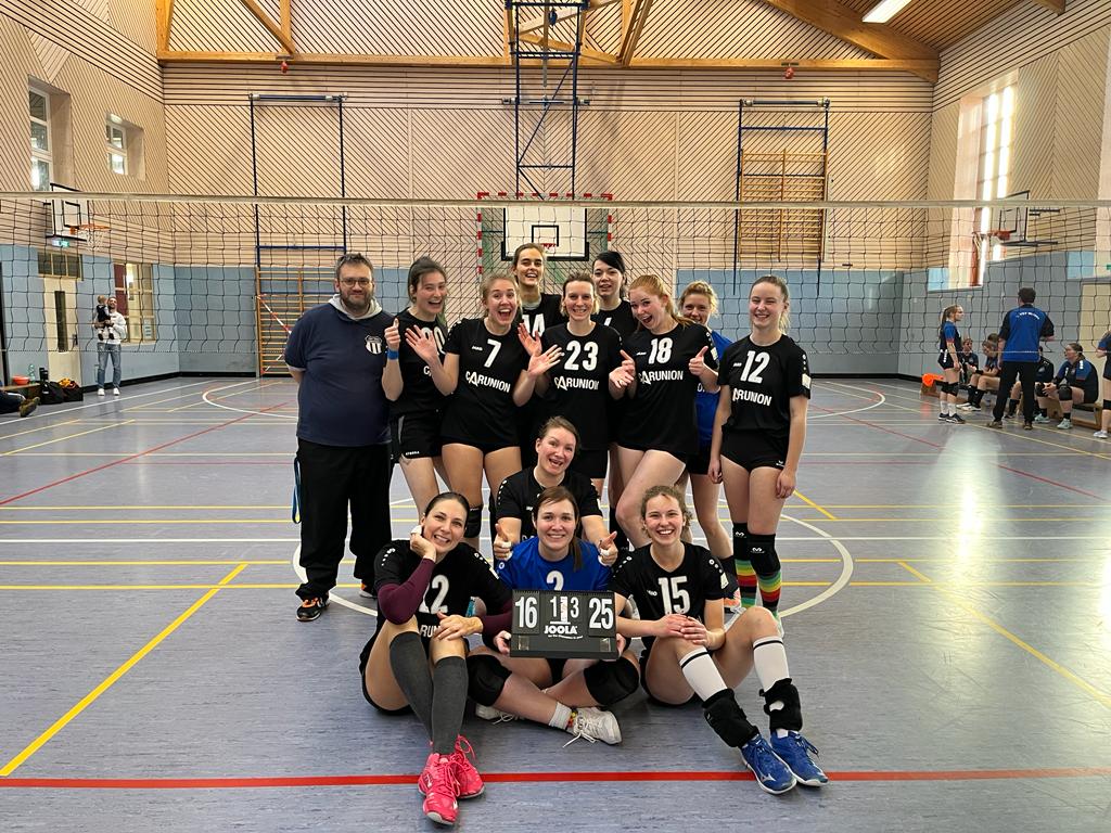 Der Bann der Ruhe auf dem Feld war gebrochen. Durch strategisch gute Wechsel vom Trainer und passende Auszeiten wurden die folgenden Sätze ebenso gewonnen. Kein sehenswertes Spiel aber dennoch ein Sieg!