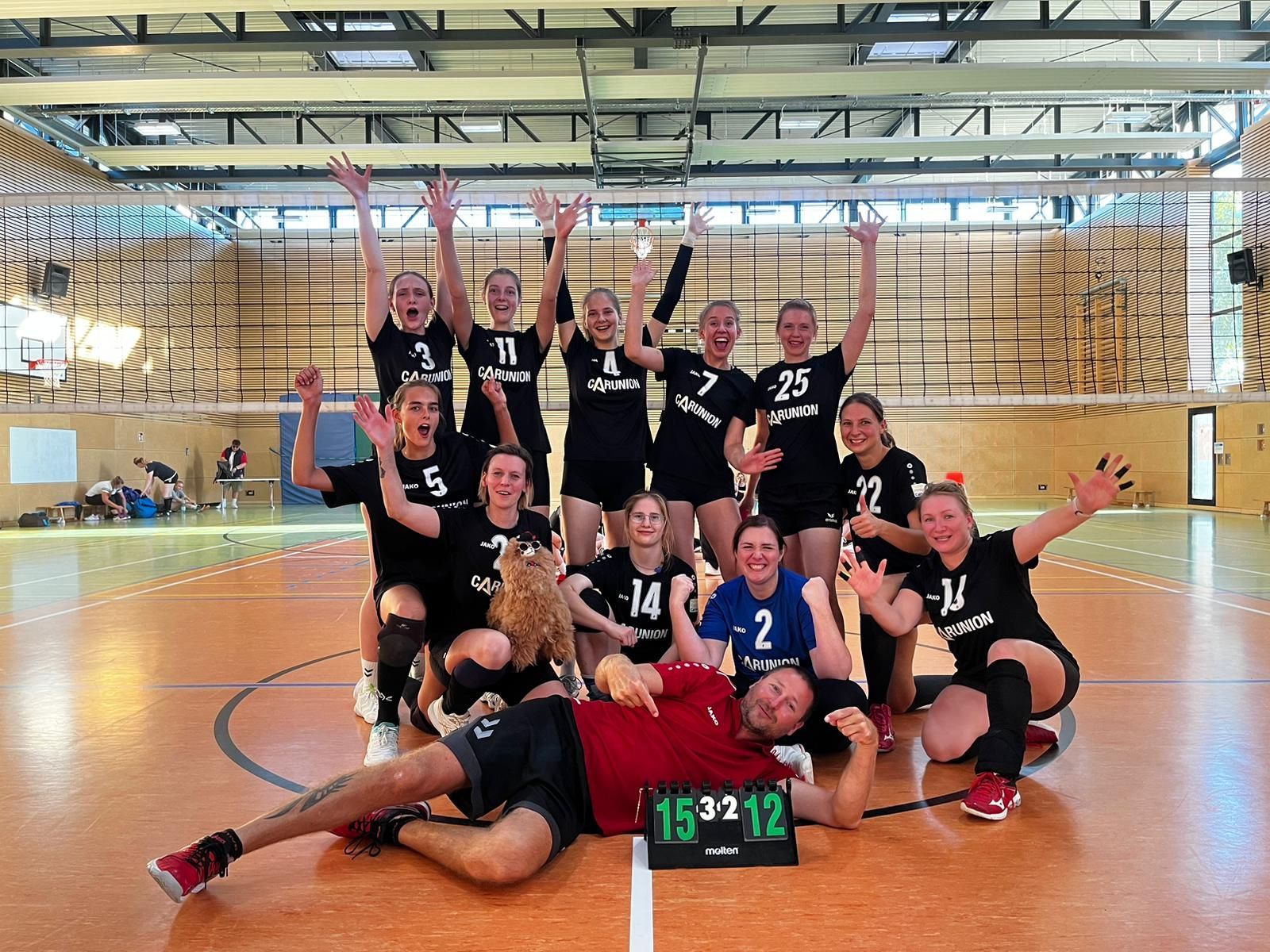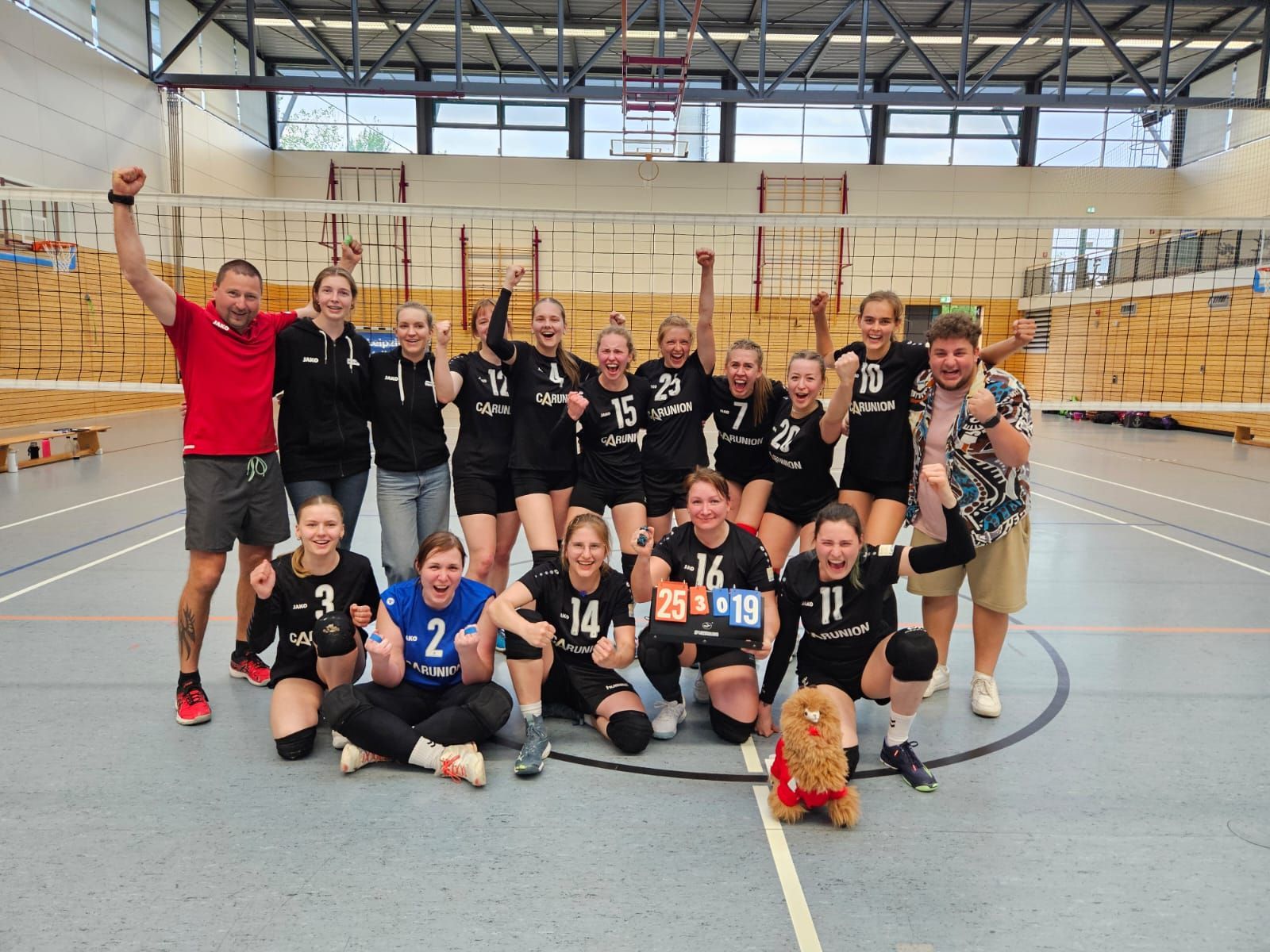 Was für ein Tag… 15:00 Uhr ging es los gegen den SV Sachsen Delitzsch – Zielvorgabe eindeutig: 3 Punkte mitnehmen. Wir waren 12 Mädels mit Unterstützung aus der 2. Damenmannschaft, da leider verletzungsbedingt ein paar Spielerinnen ausfielen. Das Spiel begann und wir spielten uns ein. Unsere größte Herausforderung war die Spielweise der Delitzscherinnen. Sie legten viel und versuchten unsere Lücke zu finden. Nachdem wir uns darauf einstellten, konnten wir vor allem Punkte über unsere Mitten sammeln und holten uns einen Satz nach dem anderen. 3:0 war das Endergebnis. Nach einer kurzen Pause starteten wir in das Spiel gegen die bereits feststehenden Meisterinnen vom Krostitzer SV. Mit viel Motivation und einem Ziel vor Augen schworen wir uns ein. Die Krostitzerinnen brachten laute Fans mit, die vor allem durch ihre Trommeln eine für uns neue Atmosphäre erzeugten. Die Spannung stieg... Der erste Satz war umkämpft. Die Krostitzerinnen hatten sich viel vorgenommen und wollten ihre starke Saison mit einem Sieg beenden. Aber auch wir hatten uns viel vorgenommen. Nach knapp 30 Minuten sicherten wir uns den 1. Satz mit 25:22. Große Freude aber für unser kleines Ziel brauchten wir noch einen Satz. Der 2. Satz begann, die Trommeln heizten die Stimmung an. Nach einem Rückstand holten wir uns aus unserem kleinen Tief und konnten einen Punkt nach dem anderen zurückerobern. Wir fanden neue Energie, auch durch das Anfeuern unserer Fans und entschieden den 2. Satz 25:18 für uns. Wow was war das.... Mega! Jetzt war klar, dass wir dieses Spiel nicht mehr aus der Hand geben wollten. Jeder brachte weiterhin Spitzen Leistung. Mit positiver Stimmung arbeiteten wir Punkt für Punkt unserem Ziel entgegen. 25:19 unser Satz und unser Sieg. Das hätten wir nicht gedacht, was für ein Saisonabschluss. Die ganze Saison, war klasse: Trotz einigen Ausfällen und Verletzungen am Spieltag haben wir in jedem Spiel Punkte gesammelt, ob gewonnen oder verloren, 1 Punkt war immer mindestens dabei. Wir haben uns sensationell entwickelt und unsere jungen Spielerinnen, die erst in dieser Saison dazustießen, sind mittlerweile fester Bestandteil und nicht mehr wegzudenken aus unserem Team. Im Laufe der Saison gab es auch Verstärkung auf Seiten der Trainer, so dass wir ein neues Trainerduo bilden konnten. Auch nicht zu vergessen: unsere Jenni, die uns an jedem Spieltag als Physiotherapeutin zur Seite stand und nicht nur für unsere Physis, sondern auch mental eine wichtige Stütze war. So rockten wir die erste Saison als Aufsteigerinnen und beenden die Saison als VIZEMEISTER. Ein Riesen Dank auch an alle Organisatoren und Sponsoren, die uns jede Saison den Ligabetrieb überhaupt erst ermöglichen. Nun geht es für uns in die Vorbereitung für die nächste Saison, denn wir wollen nächste Saison noch mehr… Eure Leilos Es spielten gegen SV Sachsen Delitzsch: Lisa (c), Madlen, Finja, Paula, Sanna, Celine, Pauline, Sandra, Anja, Alina, Lilith und Marie (L) Es spielten gegen den Krostitzer SV: Lisa (c), Sanna, Finja, Paula, Alina, Marlene, Lilith, Pauline, Sandra, Sarah, Anja und Marie (L)