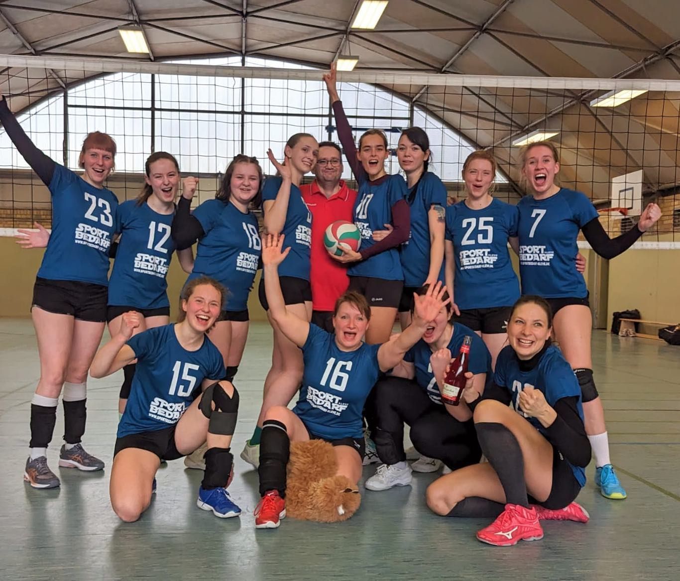 Was für ein Tag… 15:00 Uhr ging es los gegen den SV Sachsen Delitzsch – Zielvorgabe eindeutig: 3 Punkte mitnehmen. Wir waren 12 Mädels mit Unterstützung aus der 2. Damenmannschaft, da leider verletzungsbedingt ein paar Spielerinnen ausfielen. Das Spiel begann und wir spielten uns ein. Unsere größte Herausforderung war die Spielweise der Delitzscherinnen. Sie legten viel und versuchten unsere Lücke zu finden. Nachdem wir uns darauf einstellten, konnten wir vor allem Punkte über unsere Mitten sammeln und holten uns einen Satz nach dem anderen. 3:0 war das Endergebnis. Nach einer kurzen Pause starteten wir in das Spiel gegen die bereits feststehenden Meisterinnen vom Krostitzer SV. Mit viel Motivation und einem Ziel vor Augen schworen wir uns ein. Die Krostitzerinnen brachten laute Fans mit, die vor allem durch ihre Trommeln eine für uns neue Atmosphäre erzeugten. Die Spannung stieg... Der erste Satz war umkämpft. Die Krostitzerinnen hatten sich viel vorgenommen und wollten ihre starke Saison mit einem Sieg beenden. Aber auch wir hatten uns viel vorgenommen. Nach knapp 30 Minuten sicherten wir uns den 1. Satz mit 25:22. Große Freude aber für unser kleines Ziel brauchten wir noch einen Satz. Der 2. Satz begann, die Trommeln heizten die Stimmung an. Nach einem Rückstand holten wir uns aus unserem kleinen Tief und konnten einen Punkt nach dem anderen zurückerobern. Wir fanden neue Energie, auch durch das Anfeuern unserer Fans und entschieden den 2. Satz 25:18 für uns. Wow was war das.... Mega! Jetzt war klar, dass wir dieses Spiel nicht mehr aus der Hand geben wollten. Jeder brachte weiterhin Spitzen Leistung. Mit positiver Stimmung arbeiteten wir Punkt für Punkt unserem Ziel entgegen. 25:19 unser Satz und unser Sieg. Das hätten wir nicht gedacht, was für ein Saisonabschluss. Die ganze Saison, war klasse: Trotz einigen Ausfällen und Verletzungen am Spieltag haben wir in jedem Spiel Punkte gesammelt, ob gewonnen oder verloren, 1 Punkt war immer mindestens dabei. Wir haben uns sensationell entwickelt und unsere jungen Spielerinnen, die erst in dieser Saison dazustießen, sind mittlerweile fester Bestandteil und nicht mehr wegzudenken aus unserem Team. Im Laufe der Saison gab es auch Verstärkung auf Seiten der Trainer, so dass wir ein neues Trainerduo bilden konnten. Auch nicht zu vergessen: unsere Jenni, die uns an jedem Spieltag als Physiotherapeutin zur Seite stand und nicht nur für unsere Physis, sondern auch mental eine wichtige Stütze war. So rockten wir die erste Saison als Aufsteigerinnen und beenden die Saison als VIZEMEISTER. Ein Riesen Dank auch an alle Organisatoren und Sponsoren, die uns jede Saison den Ligabetrieb überhaupt erst ermöglichen. Nun geht es für uns in die Vorbereitung für die nächste Saison, denn wir wollen nächste Saison noch mehr… Eure Leilos Es spielten gegen SV Sachsen Delitzsch: Lisa (c), Madlen, Finja, Paula, Sanna, Celine, Pauline, Sandra, Anja, Alina, Lilith und Marie (L) Es spielten gegen den Krostitzer SV: Lisa (c), Sanna, Finja, Paula, Alina, Marlene, Lilith, Pauline, Sandra, Sarah, Anja und Marie (L)